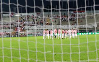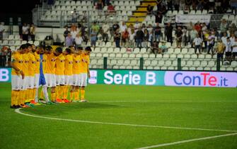 Il minuto di silenzio prima di Vicenza-Carpi che ha reso onore alle vittime del terremoto nel Centro Italia -