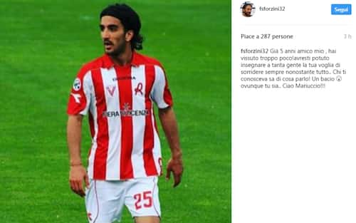 Il post su Instagram di Sforzini: "Già 5 anni amico mio, hai vissuto troppo poco! Avresti potuto insegnare a tanta gente la tua voglia di sorridere sempre nonostante tutto...Chi ti conosceva sa di cosa parlo! Un bacio ovunque tu sia.. Ciao Mariuccio!!!" -