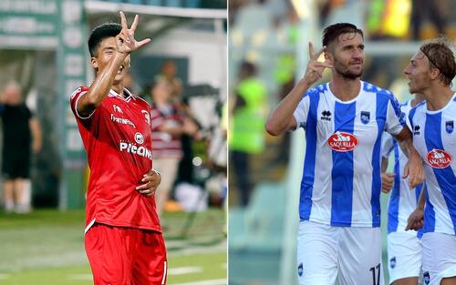 PERUGIA-PESCARA (domenica ore 20.30, diretta su Sky Calcio 1 HD). Gol annunciati al Curi nello scontro diretto tra avversarie devastanti al debutto: 5 reti in trasferta (non accadeva alla 1^ giornata dal 1953) per Giunti eguagliato in casa da Zeman, devastante ai danni del “suo” Foggia. Sfida che regala il braccio di ferro tra Han e Pettinari, entrambi a segno 3 volte nel nome dello spettacolo. Se l’allenatore boemo ha già trionfato in categoria, l’esordiente Giunti ha subito risposto presente. Fuori dai giochi lo squalificato Brighi -