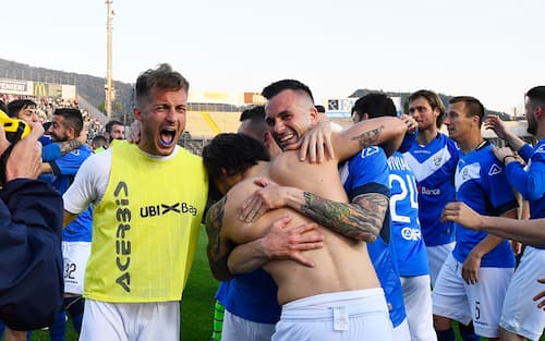 Al Rigamonti è festa grande per il ritorno del Brescia in serie A dopo otto stagioni. Dopo il pareggio del Palermo contro lo Spezia nella partita delle 12.30, alla squadra di Corini servivano i tre punti contro l'Ascoli per conquistare l'aritmentica promozione con due giornate d'anticipo e i tre punti sono arrivati: 1-0 firmato da Dessena. E al Rigamonti i tifosi impazziscono