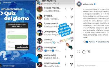 Un quiz al giorno nelle storie Instagram per stare vicini ai tifosi in questi giorni così difficili e ricordare alcune delle tappe più importanti della storia del club. Un modo per mettere alla prova i sostenitori sulla propria squadra del cuore ma che in casa Virtus Entella ha regalato una piacevolissima sorpresa. Perché, alla domanda legata al debutto in Serie B di Nicolò Zaniolo il più veloce a rispondere è stato proprio… il talento della Roma. "Contro chi ha debuttato in Serie B Zaniolo?", il quiz proposto dall’Entella. "Benevento", la risposta, ovviamente corretta, immediata del classe 1999 che "ha bruciato sul tempo i tanti tifosi che subito dopo lo hanno applaudito ed elogiato per la simpatia e l’affetto che continua a nutrire verso i nostri colori. Grande Nico, sempre top anche chiuso in casa!", ha successivamente scritto l’Entella pubblicando su Instgram il post che testimonia la rapidità della risposta di Zaniolo.