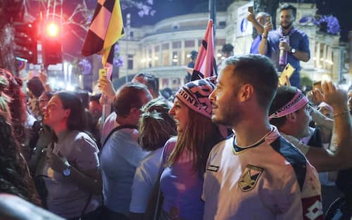 Palermo promosso in Serie B: la festa dei tifosi in città. FOTO