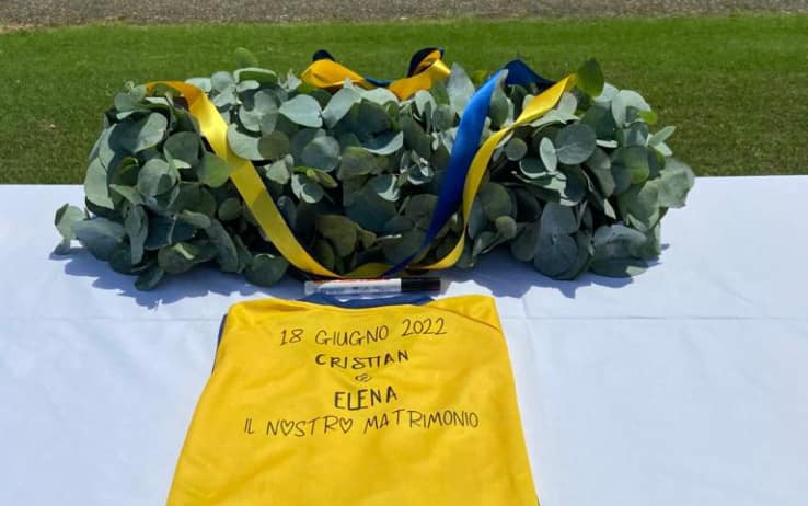 Oggi le nozze celebrate proprio sul prato verde del Braglia, con in sottofondo le note dell’inno del Modena, la colonna sonora della loro vita, e gli invitati – compreso il sindaco della città – seduti sui gradoni dello stadio, anziché sulle consuete panche della Chiesa. Un amore nato e cresciuto nel segno del Modena: colpo di fulmine scoccato al ritorno da una trasferta persa contro il Lecce nel 2007, da quel momento in poi gioie (per ultima la promozione in Serie B ottenuta nelle scorse settimana dalla squadra) e dolori per la propria squadra del cuore Cristian ed Elena li hanno sempre condivisi insieme. Fino al “sì” di oggi: una promessa, a sfondo gialloblù, per tutta la vita.