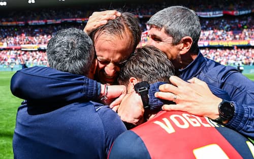 - Accolti dal boato fortissimo di Marassi, l'allenatore Gilardino e i giocatori hanno dato vita ai festeggiamenti. Tanti abbracci nella commozione generale