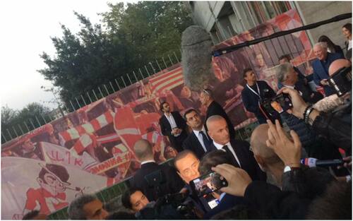 Silvio Berlusconi si è presentato allo stadio, in occasione della sfida alla Triestina, per il suo debutto come nuovo proprietario del club. Prima il discorso negli spogliatoi ai giocatori biancorossi e poi l'ingresso in tribuna, accolto dall'ovazione dei tifosi e da uno striscione dedicato a lui: "Benvenuto, grazie per il sogno"
