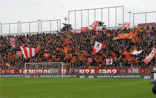 In curva le bandiere della Serenissima sventolate dai propri tifosi