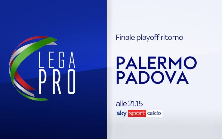La partita tra Palermo e Padova, valida per il ritorno della finale playoff di Serie C, si giocherà domenica 12 giugno alle ore 21.15 allo stadio Renzo Barbera di Palermo. La gara sarà visibile in diretta su Sky Sport Calcio (canale 202) e Sky Sport 251 e in streaming su NOW. Telecronaca della partita affidata a Dario Massara; commento di Nando Orsi; a bordocampo Massimiliano Nebuloni.