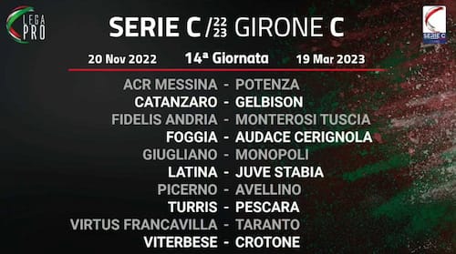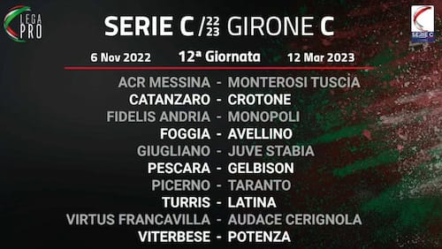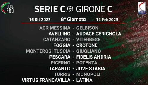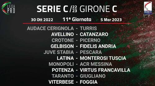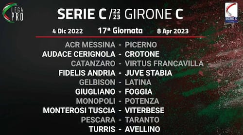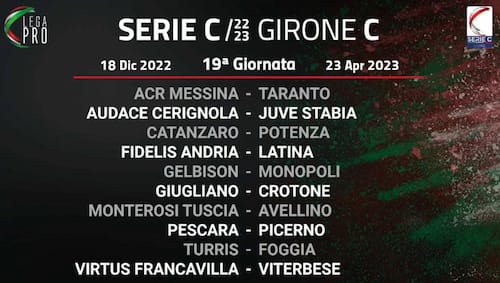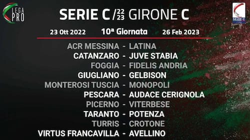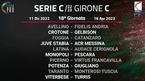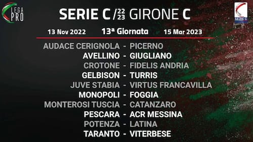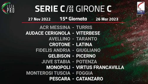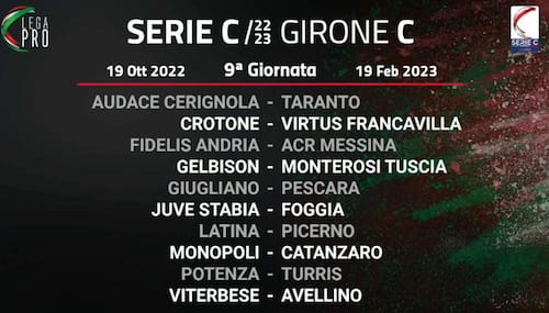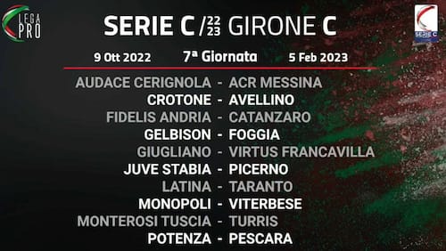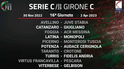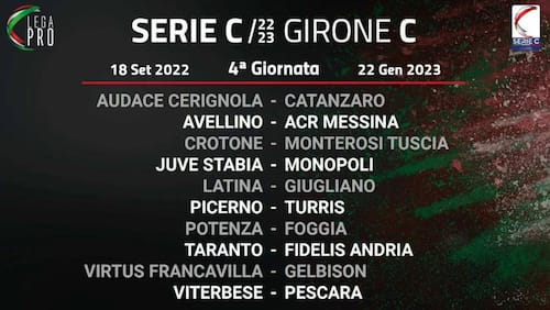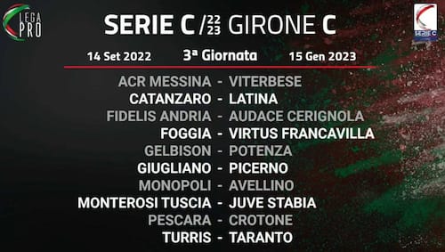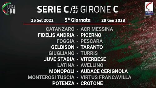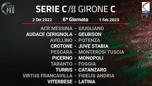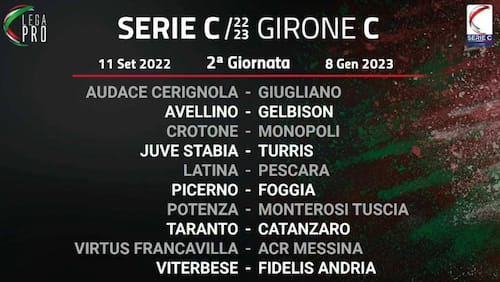 Subito due derby alla prima giornata: quello campano tra Gelbison e Juve Stabia e quello pugliese tra Monopoli e Taranto. Si parte domenica 4 settembre, ultima giornata prevista domenica 23 aprile 2023