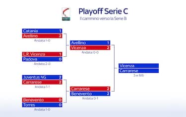 Le due finaliste dei playoff di Serie C sono Carrarese e Vicenza. Le finali (suddivise in gare di andata e ritorno) sono in programma il 5 e 9 giugno e stabiliranno chi raggiungerà in Serie B le già promosse Mantova, Cesena e Juve Stabia