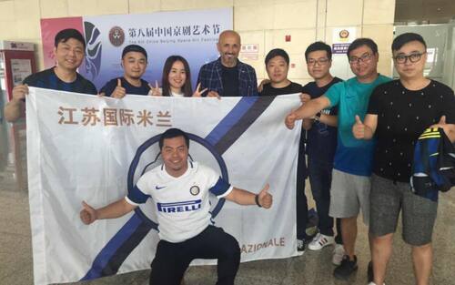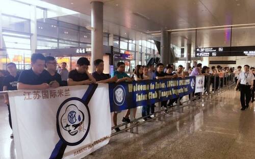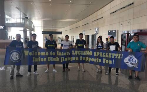 All'aeroporto l’allenatore di Certaldo è stato accolto dai tifosi dell’Inter Club Jiangsu (foto Twitter)