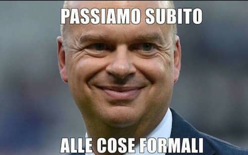 E' diventato il ritornello dell'estate rossonera: colpi di mercato, diretta Facebook, la firma sul contratto con l'amministratore delegato rossonero che invita il nuovo arrivo a passare "alle cose formali", appunto. Sui social, questo refrain, piace a tanti. E i meme si sprecano
