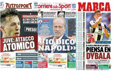 La Juventus ha chiuso per Bernardeschi: 40 milioni più il 10% della futura rivendita alla Fiorentina. Bianconeri però pronti a fronteggiare l'avanzata del Barcellona, che ha trovato in Dybala il sostituto di Neymar, diretto al PSG. L'Inter al lavoro per portare subito in Italia Lucas Lima del Santos, la Roma invece è pronta ad accogliere Kolarov