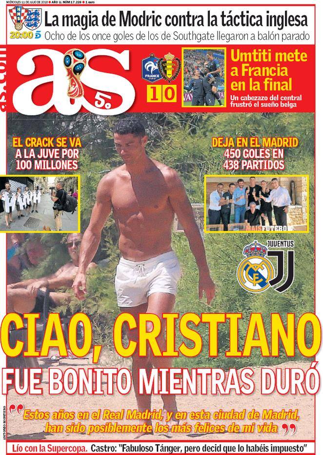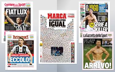 L’affare del secolo, il trasferimento di Cristiano Ronaldo dal Real Madrid alla Juventus, al centro dei principali quotidiani sportivi di tutto il mondo. "Non ci sarà un altro uguale", titola Marca, "Arrivo!", l’apertura de La Gazzetta dello Sport