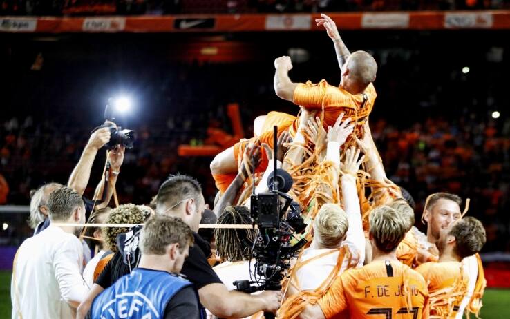 È andato in scena alla Johan Cruijff Arena l’addio all’Olanda di Sneijder in occasione del match amichevole vinto col Perù. Un grande tributo per il recordman di presenze degli Oranje che, omaggiato dal pubblico al momento della sostituzione, non è riuscito a trattenere lacrime di commozione