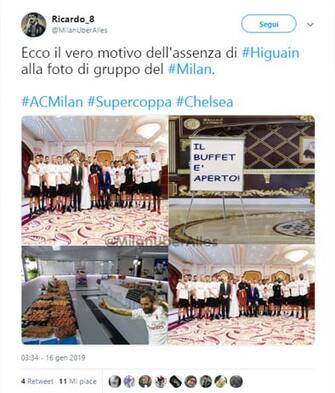 Calciomercato, Higuain assente nella foto del Milan: tutta l'ironia dei social. FOTO