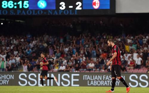 Poco male per i rossoneri. Il giorno in cui si inizia a fare sul serio è nella prima di campionato (in realtà seconda, dopo il rinvio di Genoa-Milan). A Napoli, contro la vecchia squadra del Pipita, la partita è subito in discesa con lo 0-2 Bonaventura-Calabria, ma l’altro ex Ancelotti recupera, ribalta e vince.