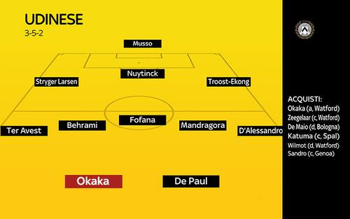 ACQUISTI: Okaka (a, Watford), Zeegelaar (c, Watford), De Maio (d, Bologna), Sandro (c, Genoa), Wilmot (d, Watford). CESSIONI: G. Pezzella (d, Genoa), Scuffet (p, Kasimpasa), Machis (a, Cadice)