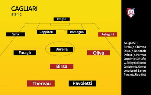 ACQUISTI: Birsa (c, Chievo), Oliva (c, Nacional), Deiola (c, Parma), Despodov (a, CSKA Sofia), Lu. Pellegrini (d, Roma), Cacciatore (d, Chievo), Leverbe (d, Samp), Cacciatore (d, Chievo). CESSIONI: Pajac (c, Empoli), Farias (a, Empoli), Andreolli (d, Chievo)