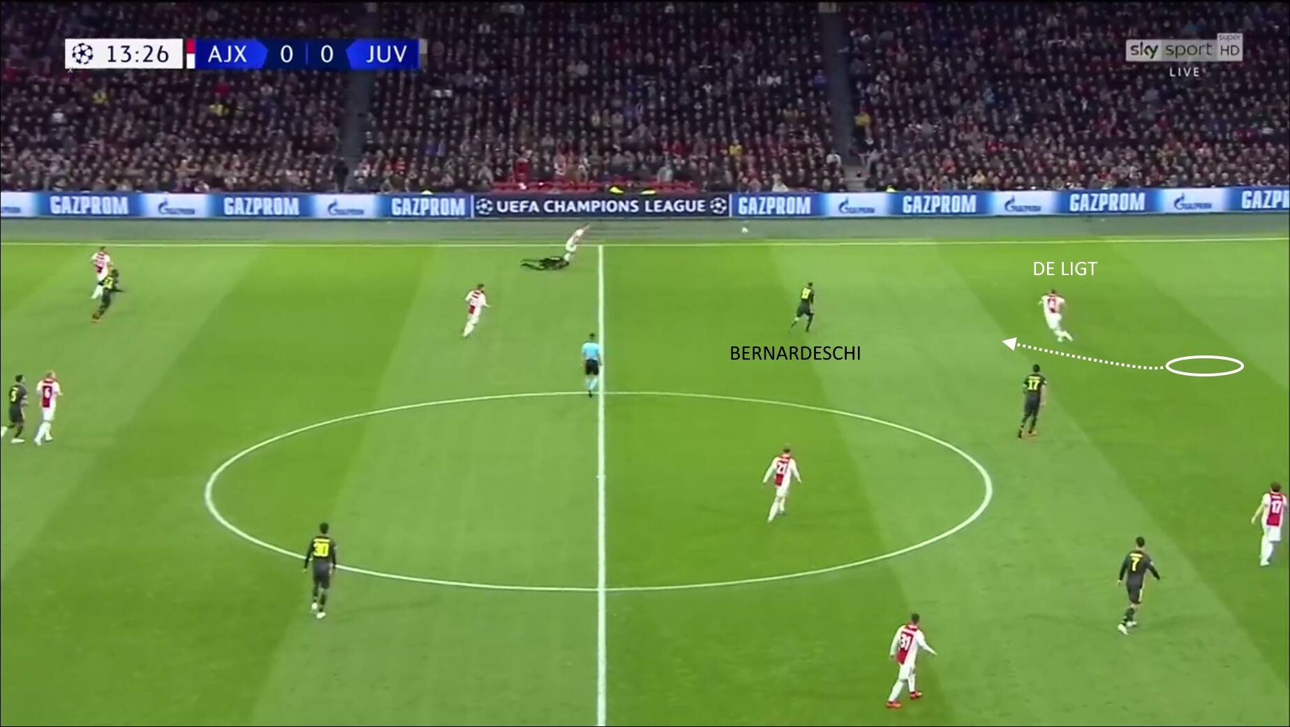Per lo stile di gioco mostrato all’Ajax, con una linea difensiva spesso molto alta, un tipo di difensore del genere può essere utile solo se alla fisicità è abbinata anche la capacità di coprire grandi distanze in poco tempo, sia attraverso una conoscenza tattica sufficiente da comprendere alla perfezione i tempi e le distanze giuste da tenere in copertura della profondità, sia con una rapidità elevata su distanze medio-lunghe. In questo senso, de Ligt ha dimostrato di essere a proprio agio anche quando deve difendere con spazi ampi alle proprie spalle.