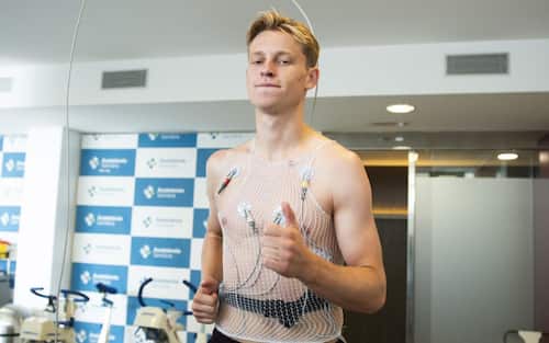 De Jong, emozionato, ha mosso i primi passi su quello che sarà il suo nuovo stadio