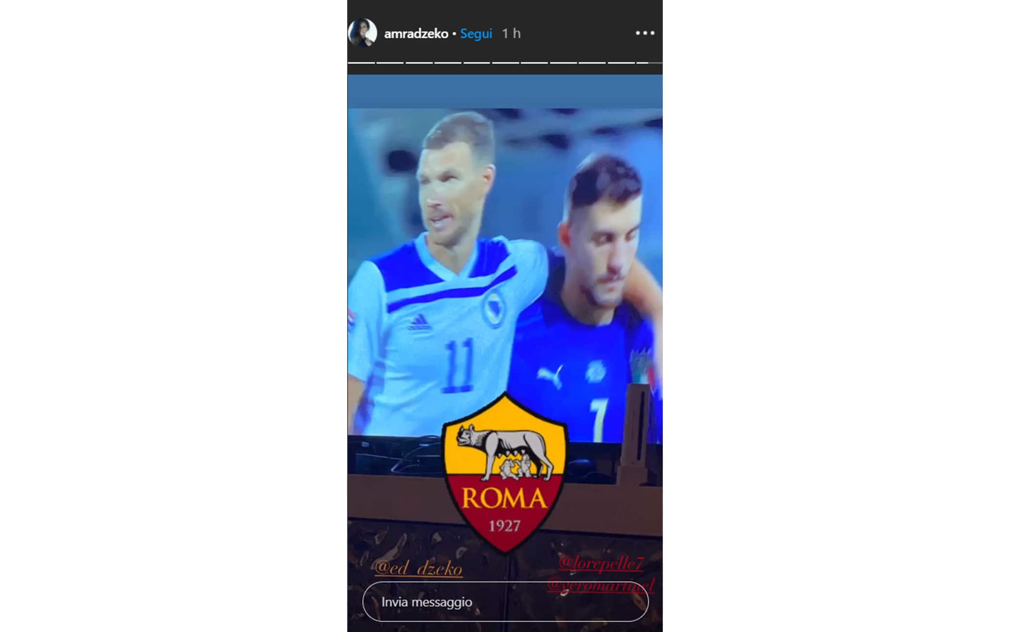 Nessuna novità dal fronte Edin Dzeko, punta della Roma peraltro a segno in Italia-Bosnia di Nations League: la sua partenza dalla Capitale è legata ad un sostituto di valore che i giallorossi devono trovare sul mercato, eventuale addio al momento respinto dal 34enne bosniaco. "Se sarò compagno di Bonucci? Non è il momento di parlare, ora ci sono le Nazionali", ha ribadito nel post-partita al Franchi. Parole che, quantomeno attraverso la sua Instagram Story, non sono mancate alla compagna del giocatore: ecco la foto postata da Amra, moglie di Edin immortalato con Lorenzo Pellegrini al termine della sfida al Franchi. Un legame tra compagni nel segno della Roma, società alla quale Dzeko non ha mai chiesto la cessione.