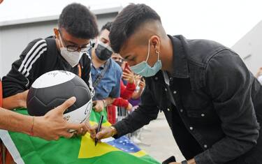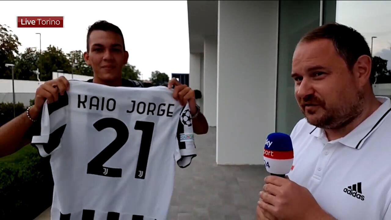 Il primo giorno in bianconero, in attesa della firma sul contratto fino al 2026, dopo che ha concluso le visite mediche. Kaio Jorge diventerà a breve ufficialmente un nuovo attaccante della Juventus, con il giovane brasiliano - che nelle prossime ore ripartirà in direzione San Paolo - ormai ex Santos che prima dell’ingresso al J Medical ha firmato autografi e scattato foto di rito con i tifosi. E proprio da una sigla su una bandiera brasiliana, lo stesso Kaio Jorge ha dato un indizio su quello che potrebbe essere il suo numero di maglia alla Juve: sotto l’autografo, infatti, il brasiliano ha scritto il numero 21. Ma non solo. Un un tifoso bianconero ha mostrato in diretta a Sky Sport24 una maglia all'inviato Francesco Cosatti, riferendogli di aver incontrato la famiglia del giocatore allo store del bianconero e che sarebbero stati prorpio loro a dirgli che il Kaio Jorge avrà la 21. E il ragazzo l'ha comprata.