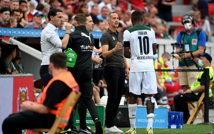 Pomerggio poco piacevole e decisamente sfortunato per il Borussia Moenchengladbach e Marcus Thuram, l'attaccante francese, figlio del grande Liliam, finito nel mirino dei dirigenti dell'Inter come ultimo rinforzo offensivo da regalare a Simone Inzaghi. Da una parte la sonora sconfitta subita dalla squadra di Hutter, battuta 4-0 dal Bayer Leverkusen di Schick; dall'altra l'infortunio al ginocchio sinistro subito dal francese, che l'ha costretto ad abbandonare la partita dopo appena 20 minuti. Il gigante francese, colpito da un intervento falloso di Tah, ha provato a restare in campo ma dopo 5 minuti si è dovuto rassegnare al cambio e ha lasciato il terreno di gioco zoppicando e con una vistosa fasciatura all'altezza del ginocchio destro. Secondo l'allenatore Adi Hütter, il problema potrebbe riguardare il legamento collaterale. Ovviamente per conoscere la reale entità del problema di Thuram bisognerà attendere gli esami.