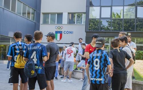 - Dopo che Lukaku ha varcato le porte del Coni, i tifosi si sono raggruppati davanti all'ingresso in attesa che si affacciasse. Nel frattempo hanno iniziato a intonare diversi cori. "Portaci lo scudetto" il più gettonato