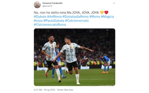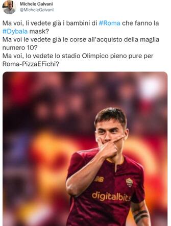 Dalle citazioni cinematografiche a quelle musicali. In questo caso viene ripreso un grande classico di Franco Califano per esprimere tutta la propria Joya per l'arrivo di Dybala nella capitale