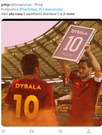 Fotomontaggi, meme, sfottò e incredulità. La scelta di Paulo Dybala di accettare l'offerta della Roma ha scatenato i commenti sul web: dal tatuaggio svelato da Mou a chi cita grandi classici cinematografici e musicali per sostenere la propria Joya, per finire alla consegna della corona di imperatore da parte di Totti. Ecco i più divertenti