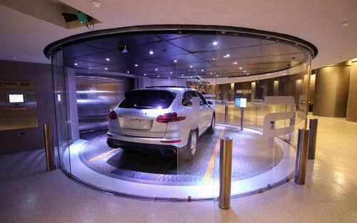 - L’imponente edificio è caratterizzato da una particolarità unica: tre ascensori per auto che consentono ai residenti di parcheggiare i propri veicoli sullo stesso piano dell’appartamento