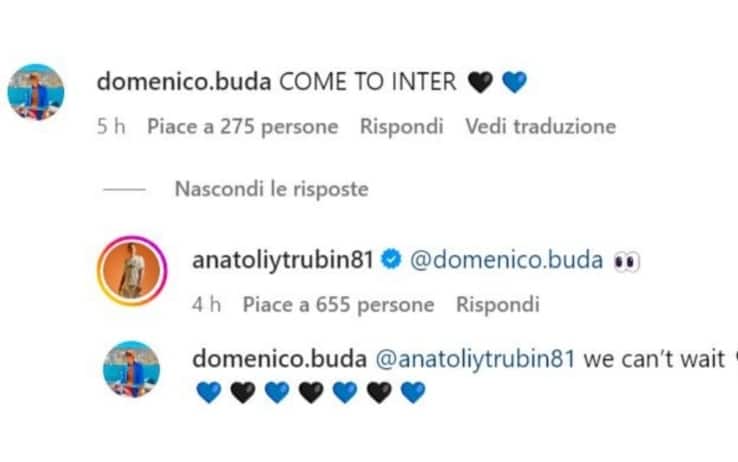 Ancora un indizio social. A offrirlo è Trubin, portiere dello Shakhtar, entrato da tempo nel mirino dell'Inter alle prese con il post Onana, indirizzato verso il Manchester United. Sempre la stessa emoticon. Perché se 24 ore prima l'interazione social era stata dedicata a un post in cui si parlava della cessione di Onana in Inghilterra, questa volta Trubin ha risposto direttamente a un tifoso nerazzurro. "Vieni all'Inter", l'invito di quest'ultimo. L'emoji dei due occhi la risposta del portiere, come a voler dire: tenete d'occhio la situazione.