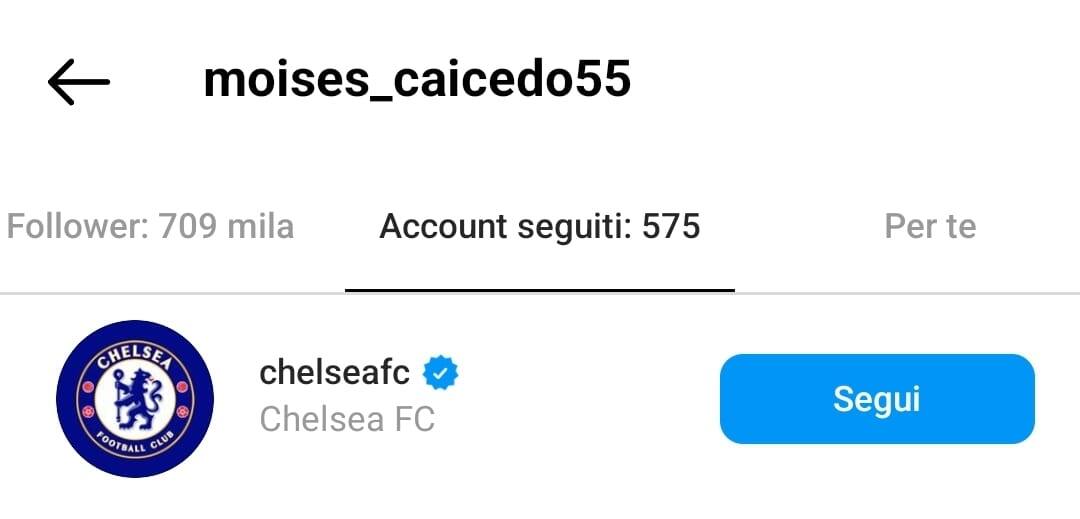 Caicedo inizia a seguire su Instagram i Blues