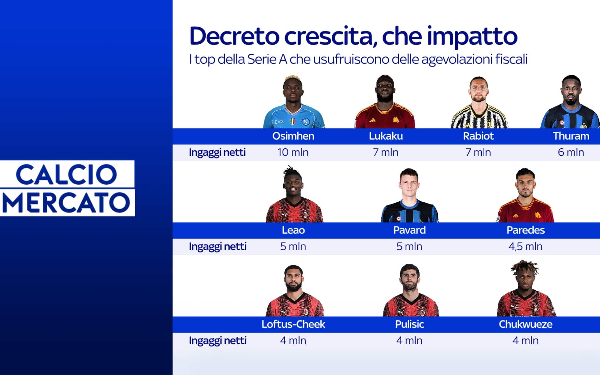Il decreto crescita finora ha permesso una maggiore competitività delle squadre italiane sul mercato. Ha permesso finora di poter pagare meno tasse per uno stipendio netto competitivo. Alla squadra che comprava insomma un giocatore con uno stipendio da 1 milione di euro è costato circa 1,5 milioni anziché 2. Questo ha portato le squadre italiane o a spendere di meno (mantenendo la stessa qualità di prima) o a spendere lo stesso, aumentando però la qualità della rosa. Non avere più a disposizione questo strumento significa, soprattutto nella situazione economico/finanziaria in cui versano moltissime delle società italiane, modificare le proprie strategie e magari arrivare a dei giocatori meno importanti: visto che generalmente chi ha un salario più alto è (teoricamente) più bravo. I grandi giocatori che sono arrivati negli ultimi anni in Italia (quelli provenienti dalle federazioni estere, sia chiaro) sono stati convinti dalle società italiane che potevano permettersi uno stipendio all’altezza, senza dover spendere troppo. Pensate a Lukaku, Leao, Pavard, Thuram, Rabiot, Pulisic, Chukwueze o Kvaratskhelia e Osimhen: con il decreto crescita anche il rinnovo pesa di meno nelle casse della società.