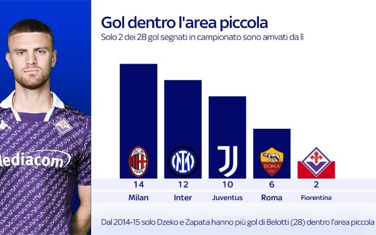 Il nove all’italiana che serviva a Italiano. L’arrivo del "Gallo" Belotti alla Fiorentina è semplicemente la risposta naturale a un bisogno espresso più volte dall’allenatore Viola, ovvero la compensazione delle mancanze di Beltran e Nzola nell’attacco alla porta. Le due immagini che lo dimostrano chiaramente arrivano dal piede di Parisi, due cross - contro Sassuolo prima e Inter poi – che attraversano tutta l’area piccola senza che ci sia un attaccante a spingere dentro il pallone. Dei 28 gol segnati in campionato dalla Fiorentina, non a caso, appena due sono arrivati da dentro l’area piccola. Solo Empoli, Salernitana e Monza da questo punto di vista hanno fatto peggio. Ecco, quello diventerà il recinto del Gallo. Belotti arriva per riempire esattamente quel vuoto, visto che dal 2014-2015 solo Dzeko e Zapata hanno segnato più dei suoi 28 gol dall’interno dell’area piccola in Serie A.