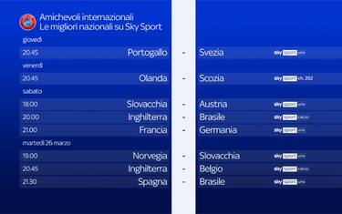 Grandi amichevoli internazionali su Sky: guida tv
