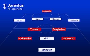 Con i due nuovi arrivi, l'ipotetica formazione titolare di Thiago Motta potrebbe essere questa, con Nico a destra, Conceicao a sinistra e Yildiz trequartista alle spalle dell'unica punta Vlahovic. In mediana la coppia Douglas Luiz-Thuram, senza dimenticare le alternative rappresentate da Locatelli, Fagioli, Weah e i più giovani come Mbangula e Adzic