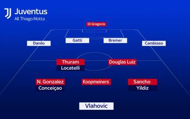 Koopmeiners dovrebbe agire da trequartista nel 4-2-3-1 fluido di Motta alle spalle dell'unica punta Vlahovic. Esterni a piede invertito Nico Gonzalez a destra e il numero 10 Kenan Yildiz a sinistra. Francisco Conceicao, portoghese mancino arrivato dal Porto, fungerà da prima alternativa, con la possibilità di occupare entrambe le fasce. Lo stesso Nico a Firenze ha giocato spesso a sinistra per incastrarsi meglio con Ikonè. Potrà farlo tranquillamente anche a Torino