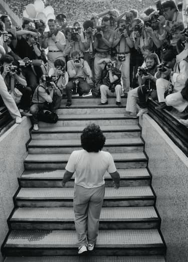Il 5 luglio 1984 Diego Armando Maradona spuntava dal tunnel dello stadio (allora San Paolo) per il primo saluto a Napoli. Quel momento storico è stato immortalato alla perfezione da prospettive diametralmente opposte: Napoli si presenta a Diego, Diego si presenta a Napoli. Per la prima volta le due foto sono esposte assieme in un soggiorno trasformato in una galleria d'arte