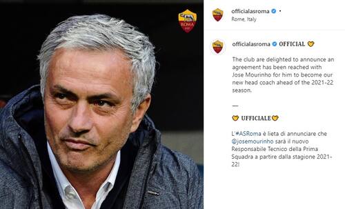 In pochi avevano saputo leggere quelle sue dichiarazioni riguardo un possibile ritorno in Italia al quale non avrebbe detto di no. Chi poteva mai immaginare che stesse parlando di un futuro imminente? Appena due giorni dopo quelle parole (“Allenerei anche una rivale dell’Inter”, 2 maggio), un comunicato ufficiale della Roma coglie tutti di sorpresa: Mourinho allenerà i giallorossi nella prossima stagione. Accordo trovato in gran segreto.