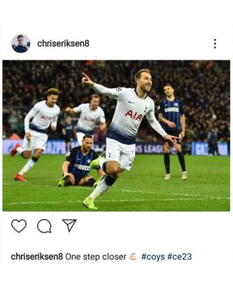 Per il Tottenham - e per Eriksen - sarà l'inizio di una cavalcata indimenticabile, con l'apoteosi nella semifinale di ritorno della "sua" Amsterdam Arena, nella notte di Lucas Moura, autore di una tripletta nel 3-2 all'Ajax (foto dal profilo Instagram ufficiale di @chriseriksen)