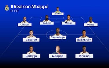 La squadra campione d'Europa impreziosisce il valore della sua rosa con un fenomeno come Kylian Mbappé, presentato ufficialmente al Bernabeu davanti a 75mila spettatori: ad Ancelotti il compito di inserirlo preservando gli equilibri. Non sarà semplice, ma un undici così è probabilmente il sogno di ogni allenatore... Ecco i possibili schieramenti del Real Madrid di Mbappé nella prossima stagione