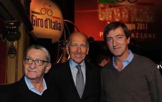 Andrea Bartali, figlio di Ginettaccio, Vittorio Adorni e Faustino Coppi (foto Ansa)
