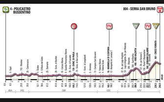 3ª tappa, 6 maggio: Sorrento-Marina di Ascea - Tappa spettacolare, con saliscendi adatti a chi vuole portare a termine una fuga ma anche a chi vuole iniziare a sparigliare la classifica. 30 km di salite, intervallate da pianure e discese: occhio al finale