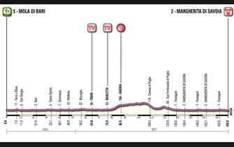 6ª tappa, 9 maggio: Mola di Bari-Margherita di Savoia (169 km) - Prima vera tappa tutta per velocisti: qui la volata è praticamente garantita -