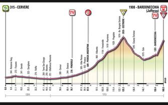 9ª tappa, 12 maggio: San Sepolcro-Firenze (170 km) - Su e giù per gli Appennini: quattro gran premi della montagna, non di certo proibitivi, ma che potranno scremare il gruppo -