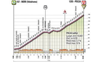 18ª tappa, 23 maggio: Mori-Polsa (20,6 km - CRONOSCALATA) - Non ci si ribalta, ovvero non ci sono pendenze proibitive. La media infatti è attorno al 7 percento -