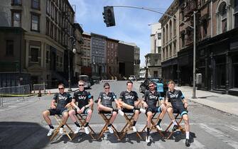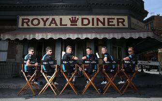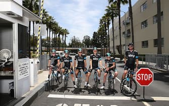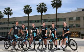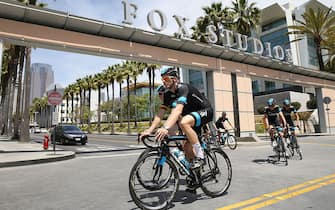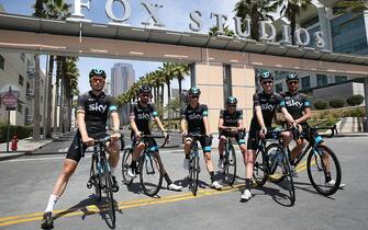 Danny Pate, Ian Boswell, Joe Dombrowski, Josh Edmondson, Sir Bradley Wiggins e Christian Knees del Team Sky ospiti dello sponsor 21st Century Fox ai Fox Studios di Los Angeles -