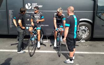 Tutto pronto per la cronometro da Barbaresco a Barolo. Tra le altre si può riconoscere la bicicletta di Edvald Boasson Hagen con il telaio personalizzato con la bandiera norvegese -