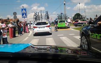 La tappa è iniziata e i direttori sportivi seguono dall'ammiraglia lo svolgersi dell'azione. Le prime fasi della corsa sono sempre molto concitate tra una fuga che parte e una foratura improvvisa -